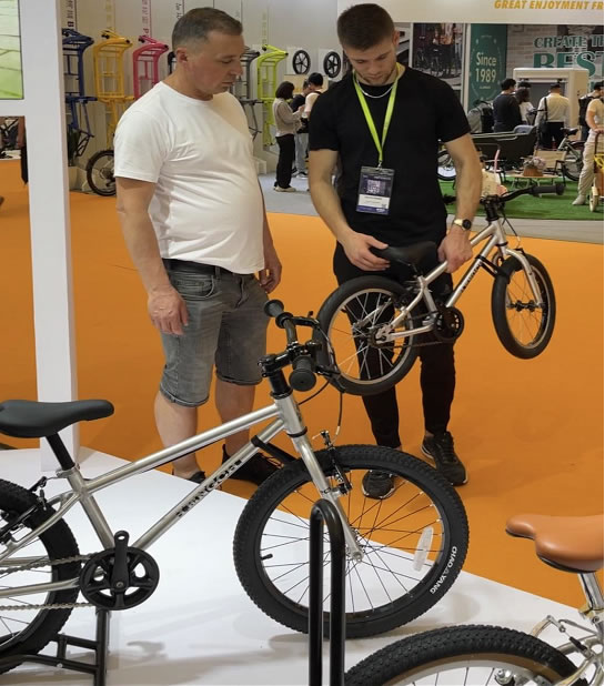展会上我司共展出鞍座、曲柄、脚蹬、车轴、儿童自行车、儿童山地车、电动玩具等七种自主品牌产品,受到国内外客户的喜爱和好评,尤其本公司的“阿捷利特”品牌的儿童自行车大受欢迎,该品牌曾获2023年度新锐品牌的称号,工业设计,产品质量更是达到行业领先水平。