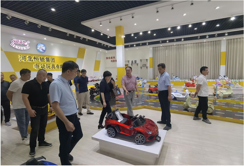 2023年8月31日中国玩具和婴童用品协会梁梅会长带领“中国童车之都”评审专家组,在平乡县副县长董辉、恒驰集团总经理董荣起陪同下到恒驰集团电动玩具公司参观、调研。集团作为河北省产业集群龙头企业,是平乡县具有代表性的童车、玩具生产企业。无论是在设计研发、产品质量、还是在生产工艺上都是玩具行业领跑者。总经理董荣起向梁梅会长就恒驰集团未来发展规划和玩具行业发展前景进行座谈、汇报。